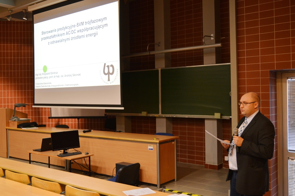 1. Krzysztofowi Dmitrukowi, uczestnikowi studiów doktoranckich na Wydziale Elektrycznym, obecnie pracownikowi w Katedrze Elektrotechniki, Energoelektroniki i Elektroenergetyki. Dnia 02 listopada 2022 r. obronił rozprawę doktorską pt.: Sterowanie predykcyjne-SVM trójfazowym przekształtnikiem AC/DC współpracującym z odnawialnymi źródłami energii. Obronie przewodniczył dr hab. inż. Piotr Miluski, prof. PB