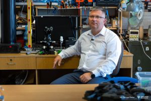 – W zespole mamy także dr. hab. inż. Dariusza Jańczaka z Katedry Fotoniki, Elektroniki i Techniki Świetlnej, który pracował nad algorytmami estymacji położenia osoby poddanej monitoringowi, dr. hab. inż. Adama Idźkowskiego, prof. PB, z Katedry Elektrotechniki, Energoelektroniki i Elektroenergetyki, który zajmował się pulsoksymetrią, algorytmami detekcji pulsu, dr. inż. Andrzeja Zankiewicza z Katedry Fotoniki, Elektroniki i Techniki Świetlnej odpowiedzialnego za opracowanie oprogramowania wewnętrznego lokalizatorów i wykonywanie testów systemu oraz mgr. inż. Grzegorza Kraszewskiego z Laboratorium Komputerowego Wydziału Elektrycznego Politechniki Białostockiej, który wspaniale zaprojektował to urządzenie jeżeli chodzi o warstwę dotyczącą płytki drukowanej i komponentów elektronicznych obsługujących system zasilania – wylicza prof. Walendziuk. – Liczę na to, że w przyszłości będziemy mieli więcej absolwentów, którzy pójdą na studia doktoranckie i którzy będą wspierali nasze zespoły Politechniki Białostockiej w realizacji tego rodzaju projektów.