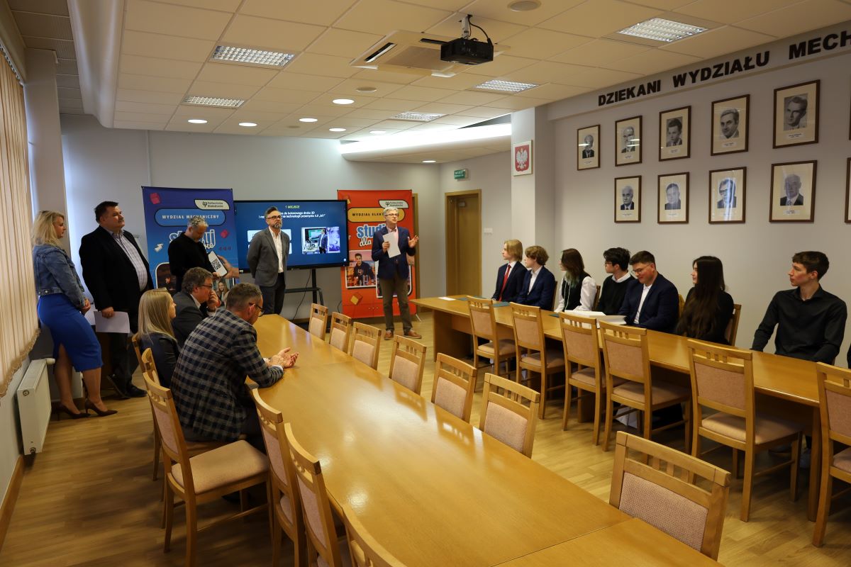 W uroczystości wzięli udział: Prorektor ds. Studenckich – dr hab. inż. Jarosław Szusta, prof. PB, Dziekan Wydziału Mechanicznego – prof. dr hab. inż. Michał Kuciej, Dziekan Wydziału Elektrycznego – dr hab. inż. Bogusław Butryło, prof. PB, Prodziekan ds. Studenckich i Kształcenia WM – dr inż. Adam Bajkowski, Prodziekan ds. Studenckich i Kształcenia WE – dr inż. Sławomir Kwiećkowski, Prodziekan ds. Rozwoju i Współpracy WM – dr Izabela Senderacka oraz przewodniczący komisji konkursowej – dr hab. inż. Kazimierz Dzierżek, prof. PB.