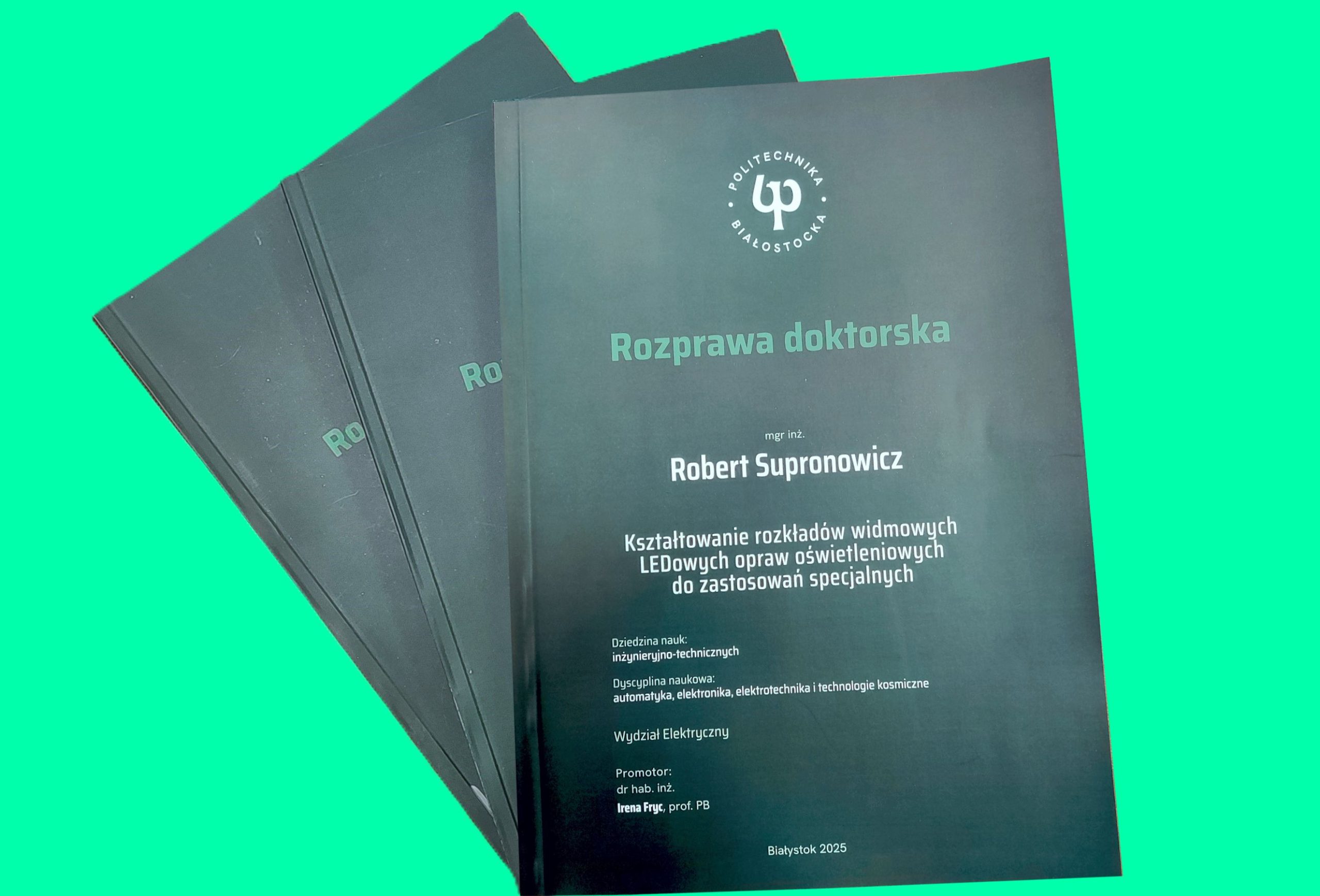 Przewodniczący Rady Naukowej Wydziału Elektrycznego Politechniki Białostockiej prof. dr hab. inż. Marcin Kochanowicz zawiadamia o publicznej obronie rozprawy doktorskiej mgr. inż. Roberta Supronowicza pt. „Kształtowanie rozkładów widmowych LEDowych opraw oświetleniowych do zastosowań specjalnych”.